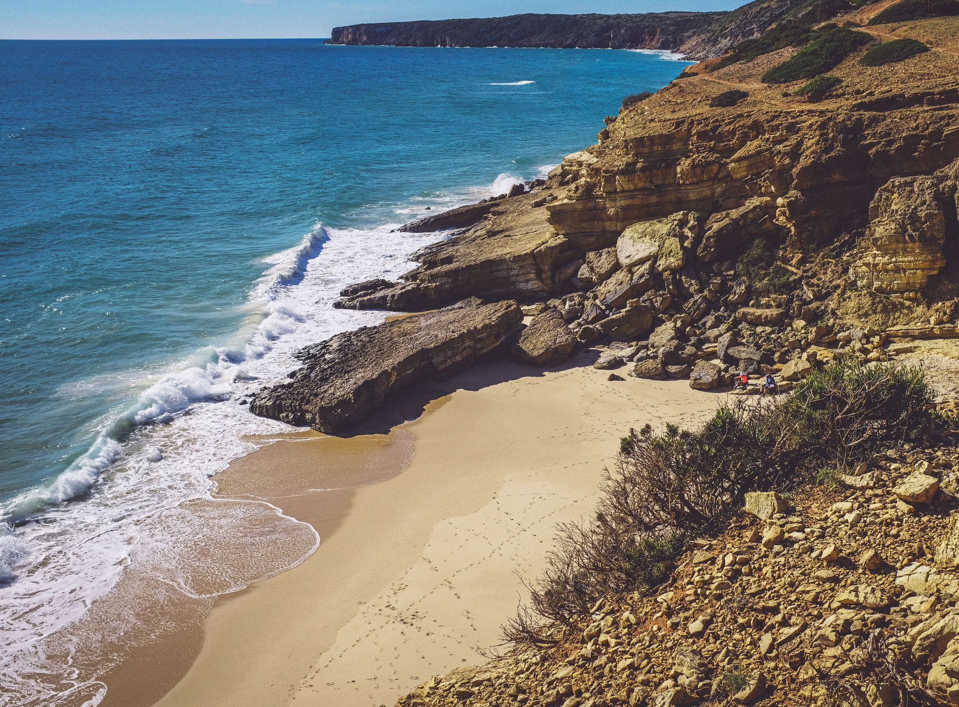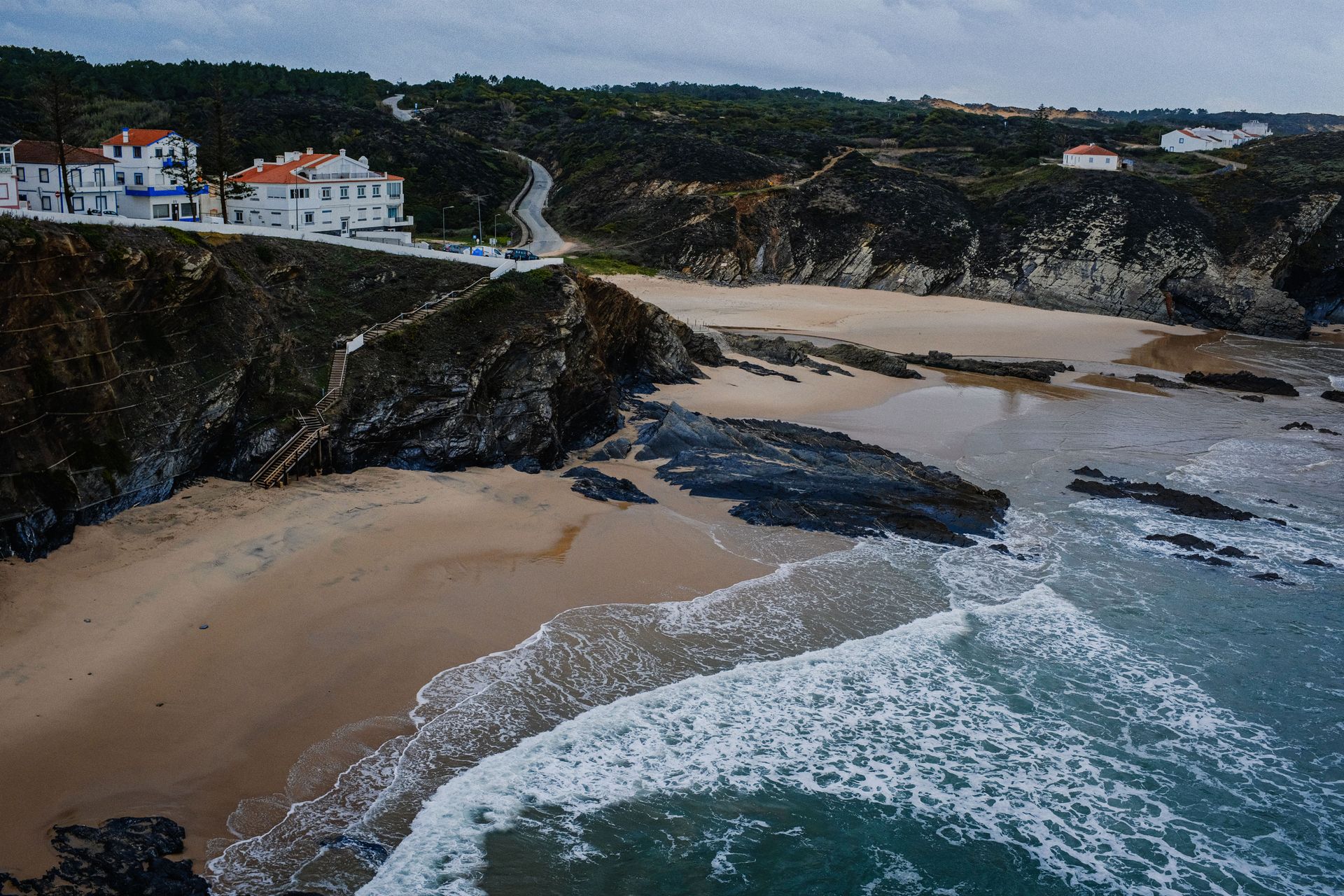 Der Ort selbst ist in wenigen Minuten zu Fuß erreichbar – klein, überschaubar, ruhig. Und genau hier verläuft auch ein Abschnitt des berühmten Fischerpfads (Trilho dos Pescadores), einem der spektakulärsten Küstenwanderwege Europas mit einer Gesamtlänge von etwa 226 Kilometern.
