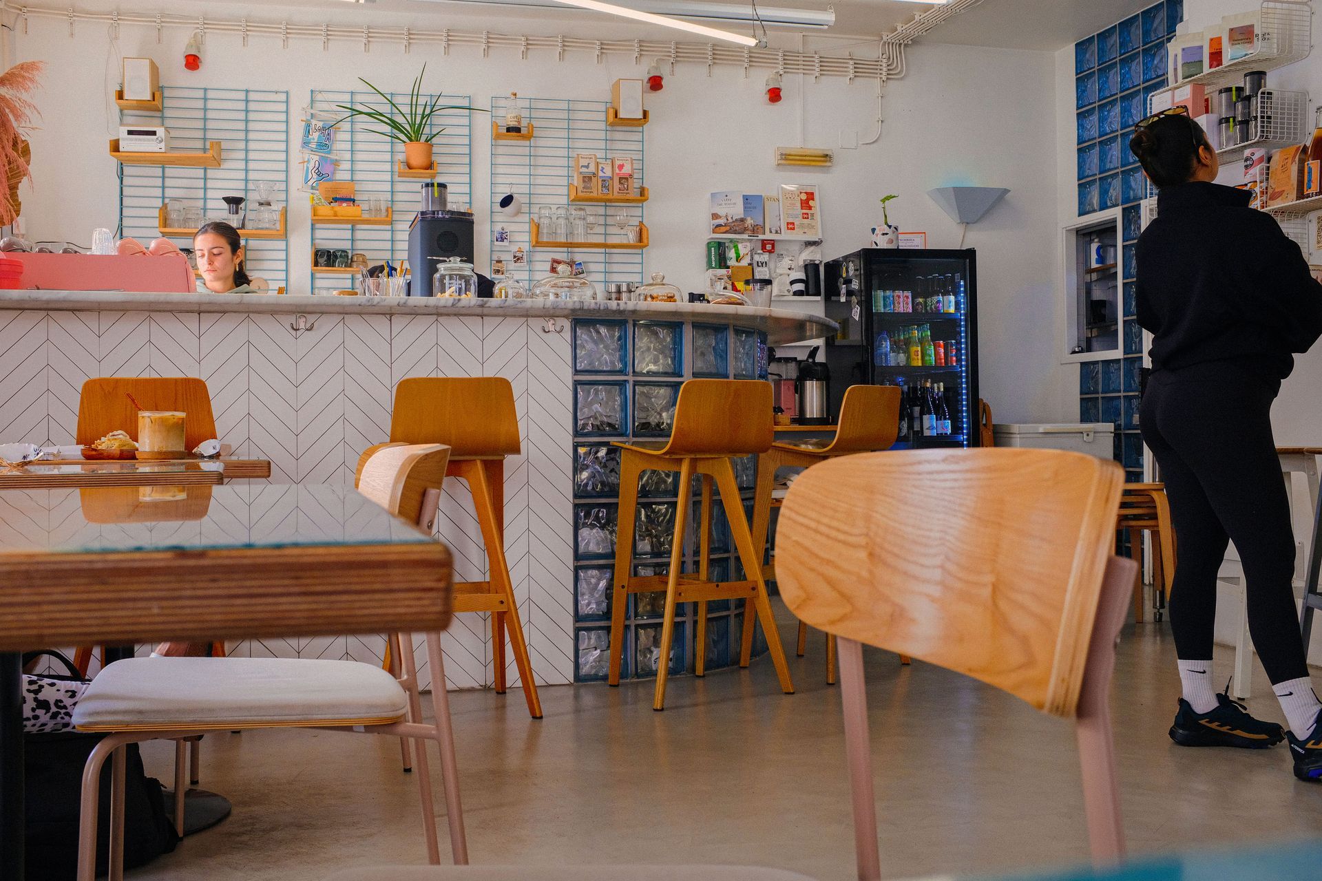 Wir suchen uns zuerst ein Bistro, das stark an einen Surfer-Hotspot erinnert. Die Einrichtung passt perfekt dazu – Holz, Boards, entspannte Atmosphäre. Das Essen ist lecker, die Gäste genau das Bild, das man hier erwartet: Hipster, Reisende, junge Frauen mit Notizbuch und durchdachtem Outfit, Menschen, die wirken, als hätten sie keinen Zeitdruck. Lagos lebt – und zwar locker.